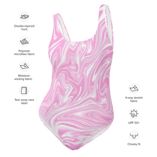 Pink Liquid Pattern One-Piece Swimsuit