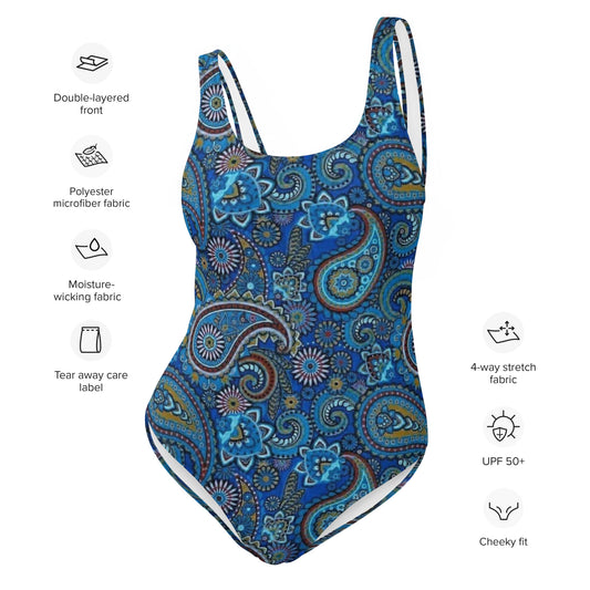 Blue Paisley Pattern One-Piece Swimsuit