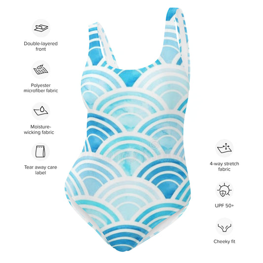 Wavy Blue One-Piece Swimsuit