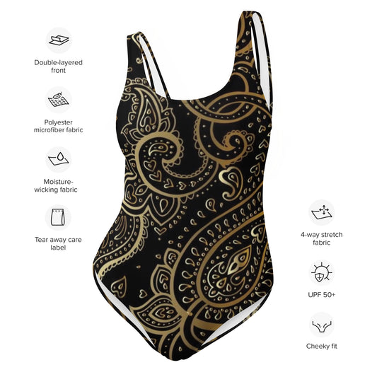 Gold Paisley Pattern One-Piece Swimsuit