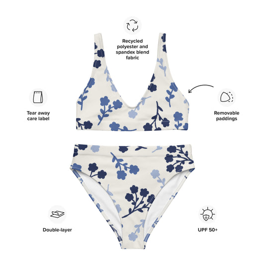Blue Flower high-waisted bikini