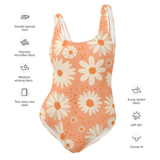 Aqua Blue Abstract Pattern One-Piece Swimsuit