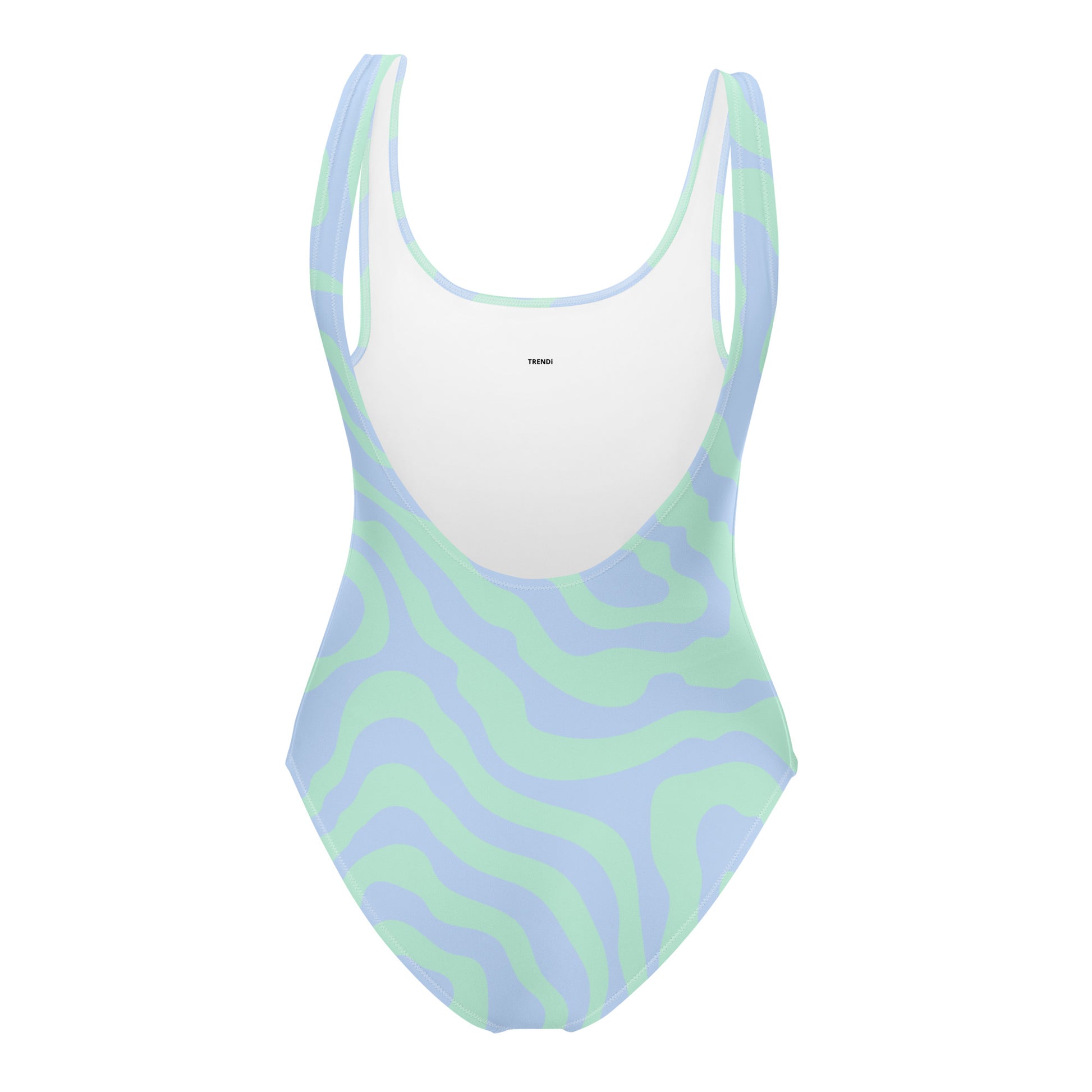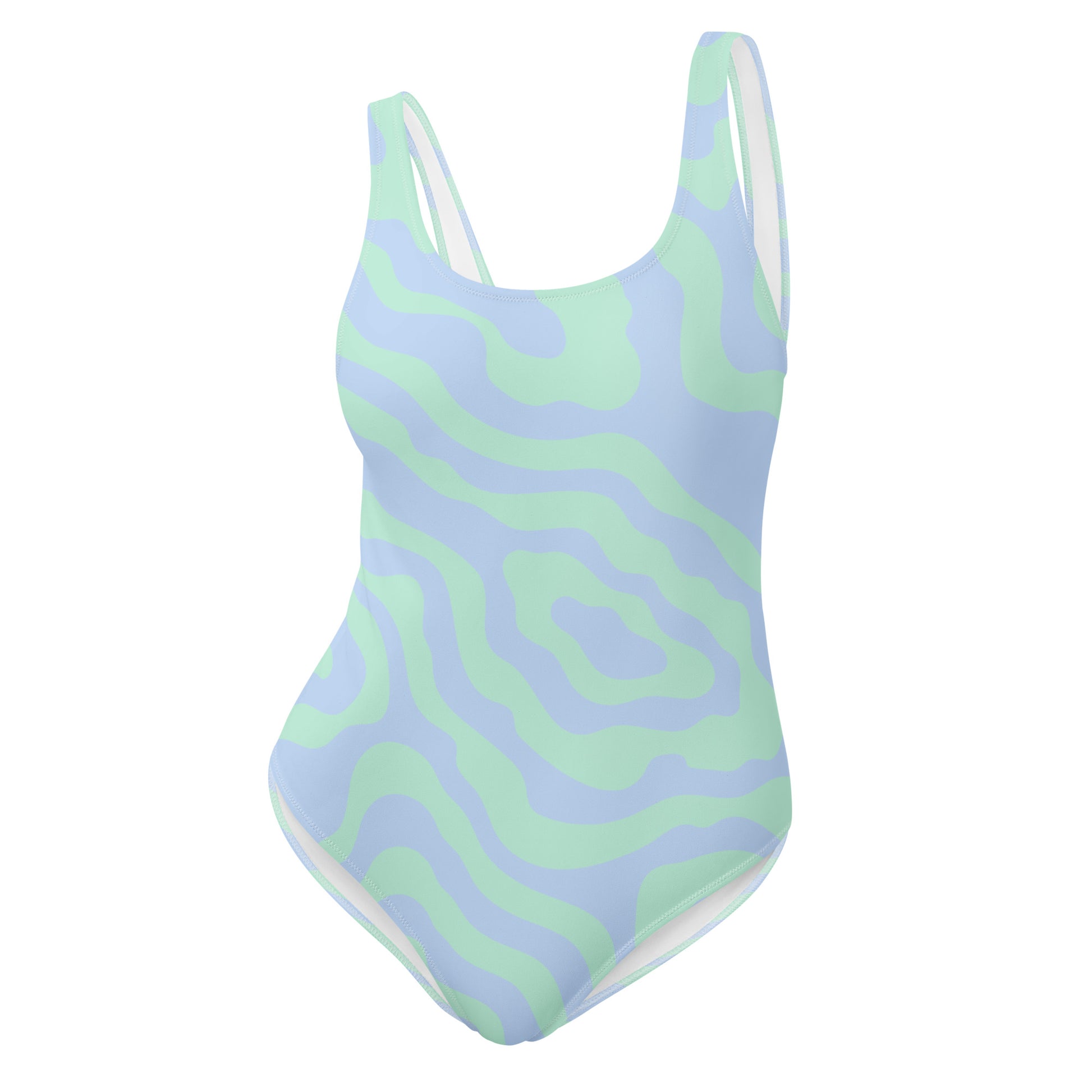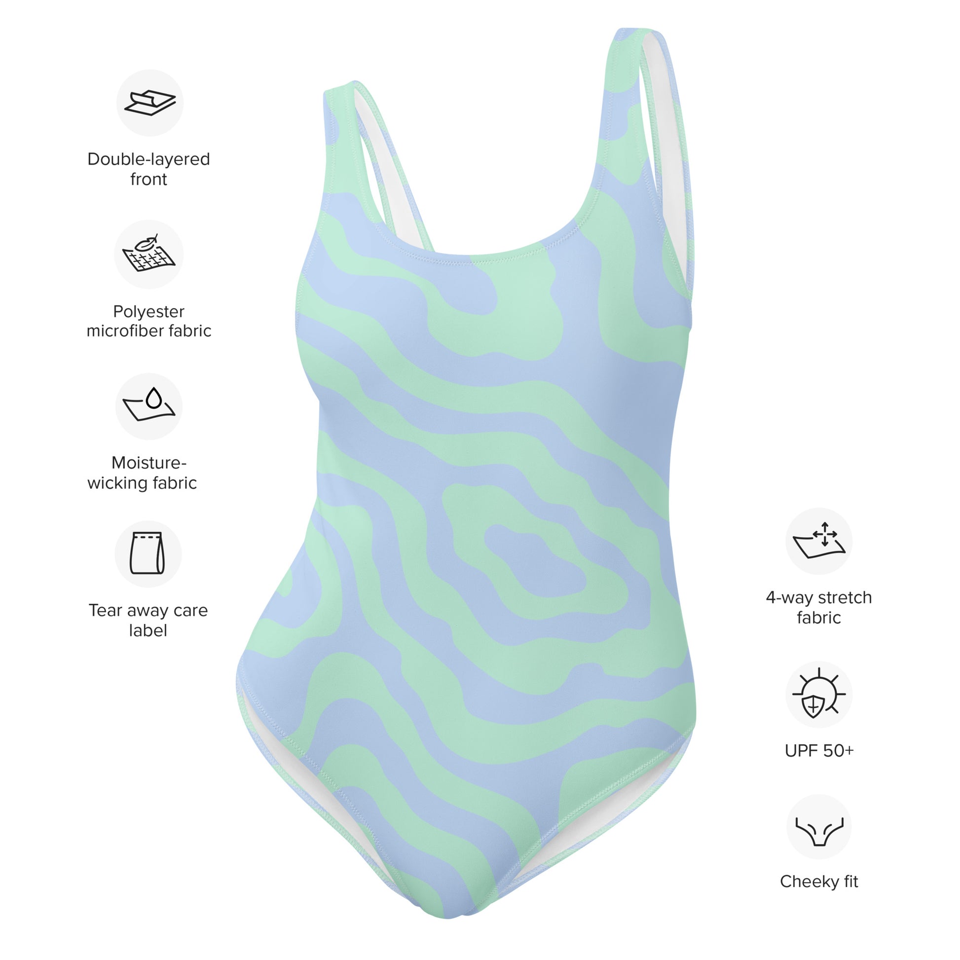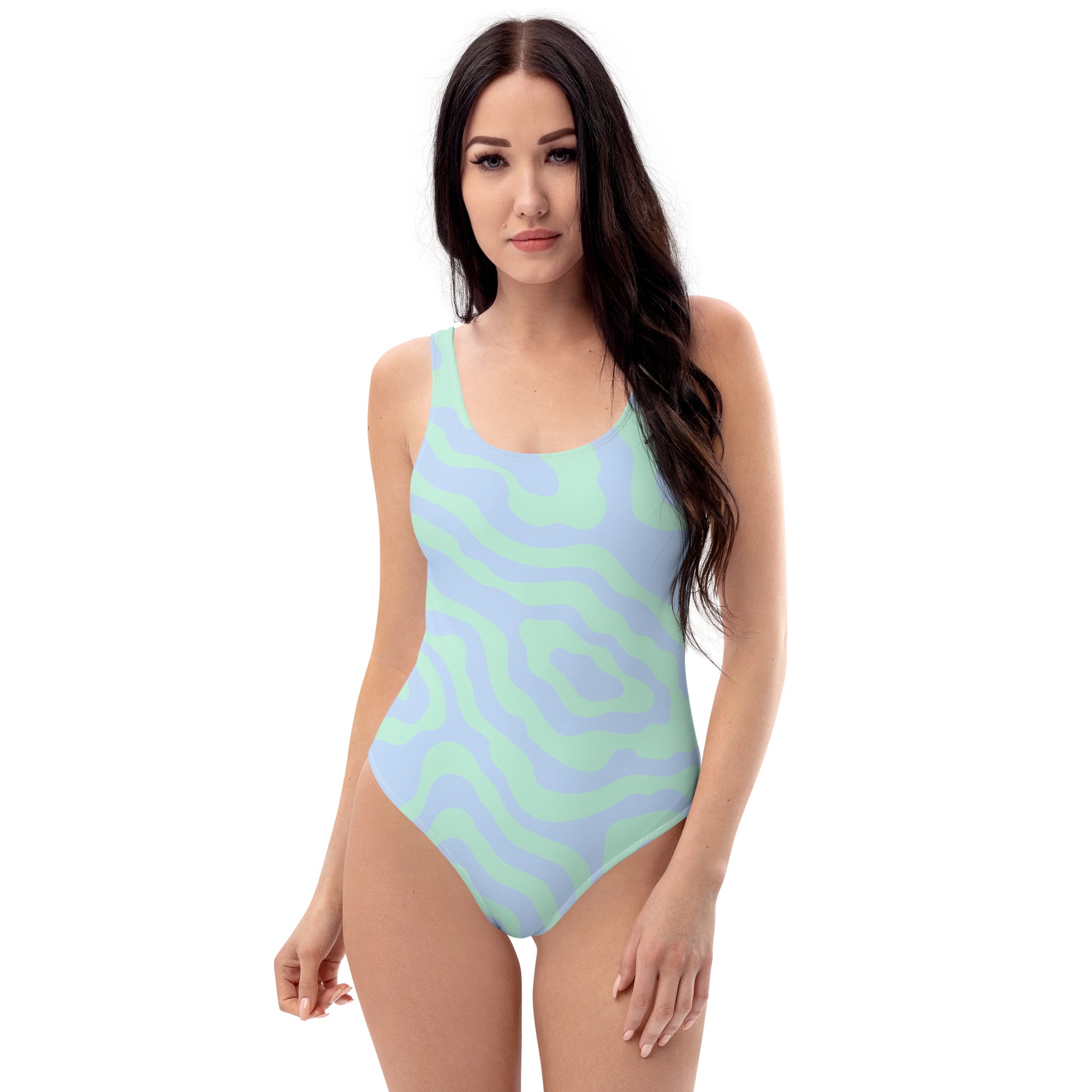 Aqua Blue Abstract Pattern One-Piece Swimsuit